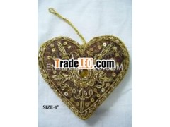 MEDIUM SIZE HANGING STAR & HEART WITH ZARI , SEQUENCE &STonEWORK EMBROIDERY ON BOTH SIDE BROCADE FABRIC. INSIDE FOAM .MEDIUM SIZE HANGING STAR & HEART WITH ZARI , SEQUENCE& STonEWORK EMBROIDERY ON BOTH SIDE BROCADE FABRIC. INSIDE FOAM.