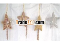CHRISTMAS TREE DECORATION STAR WITH ZARI WORKZari Christmas Hangings star. Available in various colors anddesigns, these hangings are primarily used to beautify Christmastree. We use superior quality raw material such as glass, metal,plastic and wood to ensure that these hangings comply with desiredquality norms.